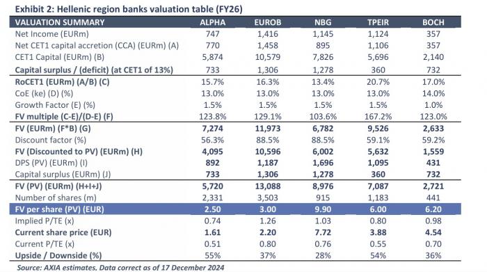 - Για την Alpha Bank στα 2,50 ευρώ, δηλαδή με περιθώριο ανόδου 55% σε σύγκριση με τα τρέχοντα επίπεδα.