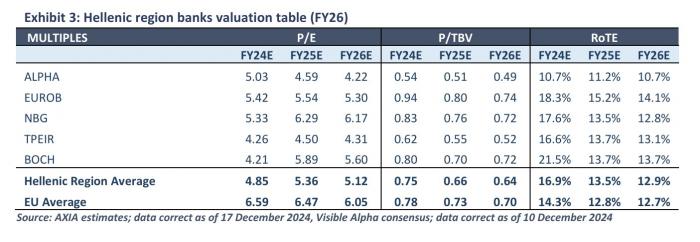 Θετικές παραμένουν οι προοπτικές για τις ελληνικές τράπεζες και το 2025, μετά την πολύ καλή πορεία τους φέτος, με μοναδική ανησυχία μία πιθανή ταχύτερη μείωση των επιτοκίων από την ΕΚΤ, όπως τονίζει σε έκθεσή της η Axia.