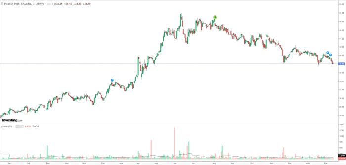 Τον περασμένο Ιούνιο η μετοχή του ΟΛΠ είχε γράψει ιστορικό υψηλό μία ανάσα από τα 50 ευρώ και έκτοτε υποχωρεί.