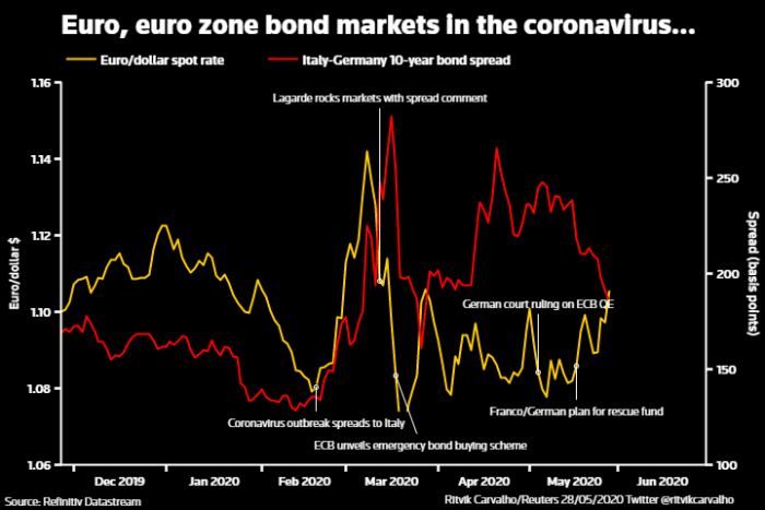Εδώ και μεγάλο χρονικό διάστημα η ΕΚΤ έχει ασκήσει πιέσεις (και κριτική) στις ευρωπαϊκές κυβερνήσεις προκειμένου να πράξουν περισσότερα. Η πρόταση της Κομισιόν για το Ταμείο Ανάκαμψης αποτελεί ένα γενναίο βήμα προς τη συγκεκριμένη κατεύθυνση. Παρ' όλα αυτά, το σχέδιο χρειάζεται την ομόφωνη στήριξη των χωρών-μελών της Ένωσης και το πιθανότερο είναι ότι δεν θα καθυστερήσει την ανάληψη πρόσθετης δράσης από πλευράς ΕΚΤ, όπως, τουλάχιστον, εκτιμούν οι οικονομολόγοι. Εάν οι ηγέτες της ΕΕ εγκρίνουν τις προτάσεις της Κομισιόν, αυτό θα αποτελέσει ένα σαφές βήμα προς την αμοιβαιοποίηση του χρέους. Η προοπτική έκδοσης ευρωομολόγων θα μπορούσε να ενθαρρύνει την ΕΚΤ σε περισσότερες αγορές υπερεθνικών (supranational) ομολόγων.