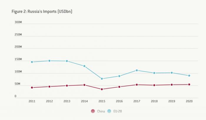 Η αξία των ρωσικών εισαγωγών από ΕΕ και Κίνα