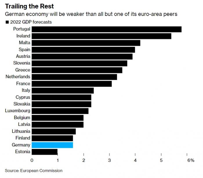 Η Ευρωπαϊκή Επιτροπή αναμένει ότι μόνο η Εσθονία θα σημειώσει βραδύτερη οικονομική ανάπτυξη από τη Γερμανία φέτος - λόγω παρόμοιων επιπτώσεων αλλά και μεγαλύτερης εγγύτητας με τη Ρωσία - ενώ ο πληθωρισμός και στις δύο χώρες αναμένεται να είναι υψηλότερος από τον μέσο όρο της ευρωζώνης.