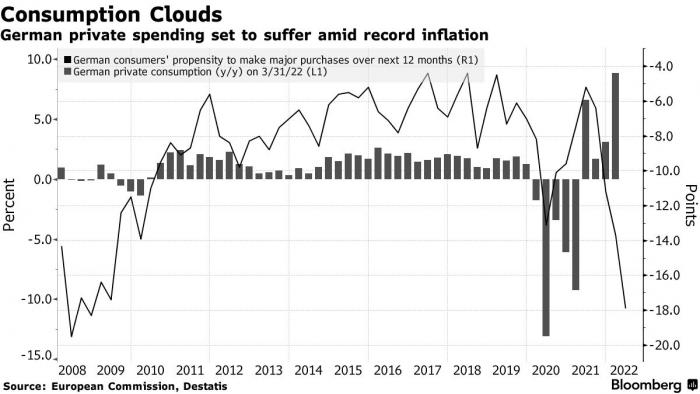 Πέρα από τους βιομηχανικούς πονοκεφάλους, η καλοκαιρινή ταξιδιωτική περίοδος είναι πιθανό να οδηγήσει σε εκροή κεφαλαίων, καθώς οι Γερμανοί καταναλωτές ξοδεύουν χρήματα στις ηλιόλουστες μεσογειακές χώρες μετά από δύο χρόνια πανδημίας. Στο λιανεμπόριο οι πωλήσεις έχουν αρχίσει να μειώνονται, ενώ η υποχώρησή τους έφθασε σε υψηλό ενός έτους τον Απρίλιο.