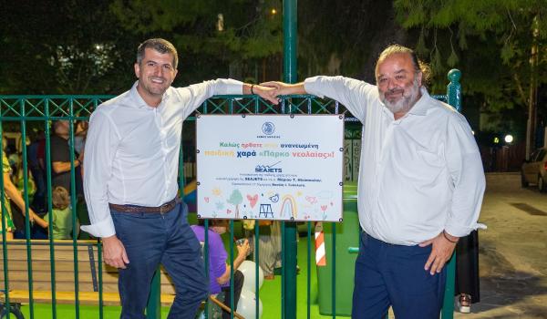 Σε κλίμα χαράς και συγκίνησης εγκαινιάστηκε η νέα παιδική χαρά στο Πάρκο Νεολαίας Νέας Ερυθραίας, έργο που υλοποιήθηκε με τη χορηγία της Seajets και του κ. Μάριου Ηλιόπουλου.