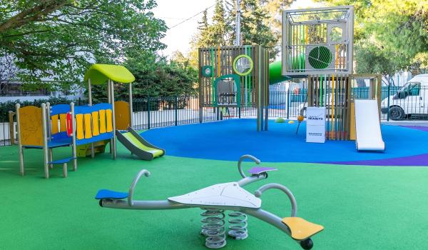 Η παιδική χαρά ανακατασκευάστηκε ολοκληρωτικά, με πλήρη αντικατάσταση δαπέδου, τοποθέτηση ολοκαίνουργιων, πιστοποιημένων παιχνιδιών, μεταμορφώνοντας τον χώρο σε ένα σύγχρονο και υψηλής αισθητικής σημείο αναψυχής για τα παιδιά και τους συνοδούς τους.