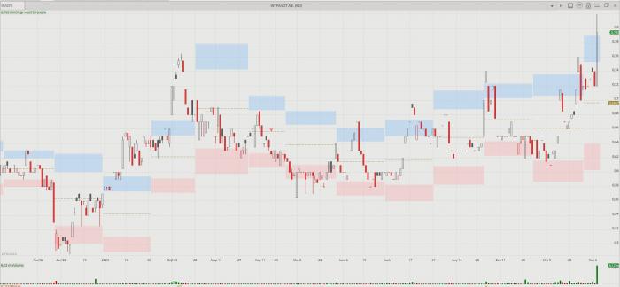 Η πορεία της μετοχής της Intralot, 31 Οκτωβρίου 2022 - 8 Νοεμβρίου 2023