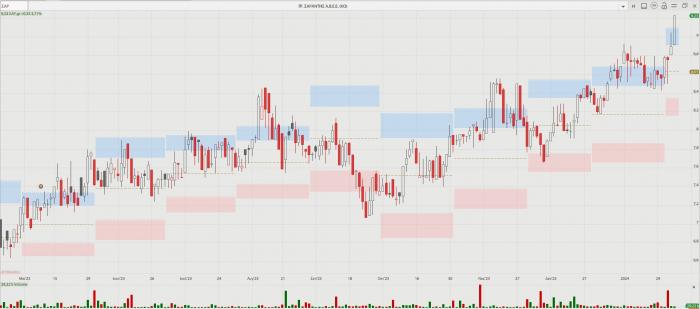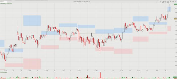 -- Τράπεζες Ι: Να λοιπόν που με συνοπτικές διαδικασίες ο τραπεζικός δείκτης, μέσα στο 2024, κατοχύρωσε κατ’ αρχάς τις 1.100 μονάδες, κατόπιν τις 1.150, την περασμένη Πέμπτη τις 1.200 μονάδες, ενώ χθες έκλεισε στις 1.238,83 μονάδες (+2,33%). Το χθεσινό κλείσιμο αποτελεί ρεκόρ 99 μηνών ή οκτώ και πλέον ετών, καθώς υψηλότερα είχε να βρεθεί από τις 25 Νοεμβρίου του 2015. Μόνο το τελευταίο πενθήμερο, ο τραπεζικός δείκτης κερδίζει 8,75% ή περίπου 100 μονάδες, καθώς στις 29 Ιανουαρίου είχε κλείσει στις 1.139,17 μονάδες. Πλέον, από την αρχή του χρόνου ο τραπεζικός δείκτης ενισχύεται κατά 16,69%, έχοντας ξεκινήσει άριστα το νέο έτος.