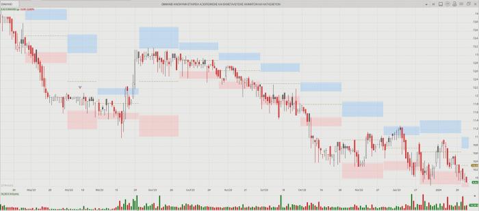 -- Dimand: Νέο ιστορικό χαμηλό τα 9,92 ευρώ, καθώς κλείσιμο κάτω από τα 10 ευρώ δεν είχε ξανακάνει. Καλή εταιρεία, αλλά η αγορά πληρώνει το… μάρμαρο της ασυδοσίας των αναδόχων - τραπεζών, που έβαλαν πανάκριβη τη μετοχή στο ταμπλό. Κρίμα για μια αγορά που θέλει να προσελκύσει νέους (αλλά και παλιούς) επενδυτές. Εισήλθε στα 15 ευρώ τον Ιούλιο του 2022.