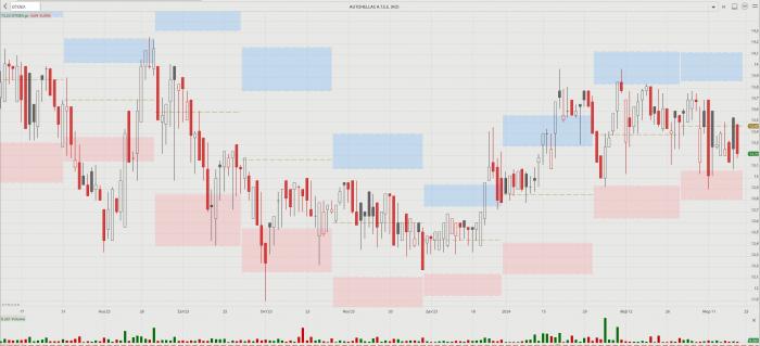 -- Autohellas: Μίζερη γενικά εικόνα, αδικείται ξεκάθαρα ως όμιλος από το χρηματιστηριακό αποτύπωμα της μετοχής, σε διαχρονικό επίπεδο. Πέρυσι, σε μια χρονιά που παρουσίασε ρεκόρ όλων των εποχών σε όλες τις γραμμές των μεγεθών της, η μετοχή είχε άνοδο μόλις 23,36%, σε ένα έτος που ο Γενικός Δείκτης κέρδισε άνω του 39%. Πρόκειται για εταιρεία χωρίς ζημιογόνα χρήση στα 60 χρόνια δραστηριοποίησής της. Όταν έχει κύκλο εργασιών πάνω από 1 δισ. ευρώ, με καθαρά κέρδη 77,2 εκατ. ευρώ, η αποτίμηση των 642,8 εκατ. ευρώ ασφαλώς δεν είναι αντιπροσωπευτική.