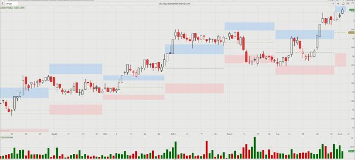 -- ΟΤΕ: Από τις 20 Ιουλίου 2023, ήτοι περίπου δέκα μήνες πίσω είχε να κλείσει η μετοχή στα 14,50 ευρώ (+1,40%), κάτι που έφερε ξανά μετά από δέκα μήνες την κεφαλαιοποίηση οριακά πάνω από τα 6 δισ. ευρώ. Έχουμε πει ότι είναι ένα από τα στοιχήματα της αγοράς φέτος. Ήδη βρίσκεται στο +12,40%. Ώθηση έδωσε η είδηση πως η Cosmote TV εξασφάλισε τα δικαιώματα τηλεοπτικής μετάδοσης όλων των ευρωπαϊκών διασυλλογικών διοργανώσεων της UEFA, το UEFA Champions League, το UEFA Europa League και το UEFA Conference League, καθώς και τα UEFA Super Cup και UEFA Youth League, έως το 2027. Πρόκειται για 546 συνολικά μεταδόσεις κάθε σεζόν.