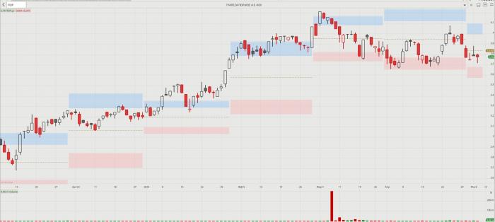 -- Τρ. Πειραιώς: Εκτός φόρμας τελευταία, στις τελευταίες οκτώ συνεδριάσεις που η αγορά «πετάει» έχει μόλις δύο θετικά κλεισίματα. Δυσκολεύεται να κρατηθεί στα 4 ευρώ και εδώ και ημέρες είναι χαμηλότερα. Στα 3,78 ευρώ χθες (-0,24%). Στο +18,12% από την αρχή του χρόνου.
