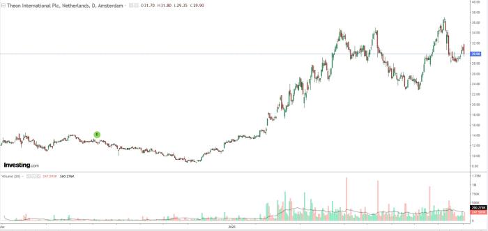 H πορεία της μετοχής της Theon στο Χρηματιστήριο Euronext Amsterdam