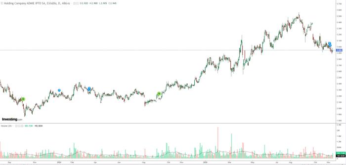 Η πορεία της μετοχής του ΑΔΜΗΕ