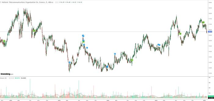 Η πορεία της μετοχής του ΟΤΕ από το 2022.