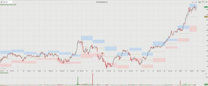 Η πορεία της μετοχής της Mytilineos Οκτ. 2021 - Φεβρουάριος 2023