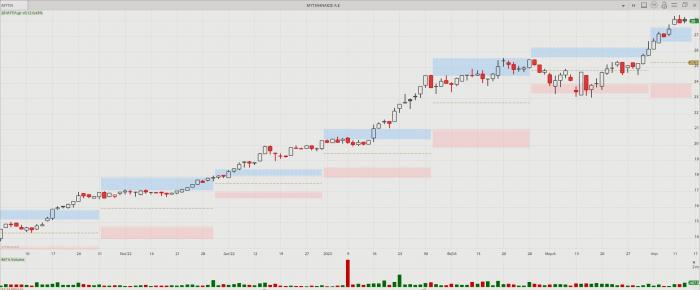 Η πορεία της μετοχής της Mytilineos, 3 Οκτωβρίου 2022 - 13 Απριλίου 2023