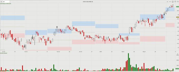 -- Coca Cola HBC: Μόλις την περασμένη Μ. Πέμπτη ξεπέρασε τα 26 ευρώ για πρώτη φορά από την έναρξη του πολέμου στην Ουκρανία. Πλέον κινείται σε υψηλά 14 μηνών και στα 26,05 ευρώ ενώ κερδίζει 5,81% το 10ήμερο και +15,27% το 2023. Η μετοχή μετά την εισβολή της Ρωσίας στην Ουκρανία υπέστη πανωλεθρία. Από τα υψηλά των 31,94 ευρώ που ήταν στις 17 Ιανουαρίου 2022, με την έναρξη του πολέμου και έως τις 8 Μαρτίου 2022 είχε πέσει στα 18,05 ευρώ, καταγράφοντας συντριπτικές απώλειες 43,47%, κάτι πρωτοφανές για το προφίλ της. Έκτοτε όμως και έως το τελευταίο κλείσιμο, ενισχύεται σε ποσοστό 44,28%, αλλά υστερεί έναντι των υψηλών του Ιανουαρίου 2022. Πάντως, η κεφαλαιοποίηση πλησιάζει εκ νέου τα 10 δισ. ευρώ (περίπου το 1/7 όλης της αγοράς), καθώς διαμορφώνεται στα 9,69 δισ. ευρώ, έχοντας ήδη αφήσει πίσω 3,6 δισ. ευρώ τον ΟΤΕ.