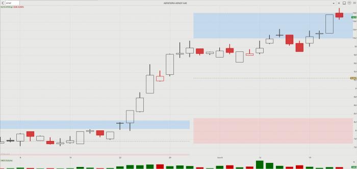 -- ΑΝΕΚ: Συμπλήρωσε εφτά σερί ανοδικές συνεδριάσεις, με συνολικά κέρδη άνω του 21%, μετά και το +10% της Τετάρτης, ενώ έχει ανεβάσει κατακόρυφα και όγκους. Χθες έκλεισε στα 0,2680 ευρώ με άνοδο 1,52%, ενώ διακίνηση όγκο 669.692 τεμαχίων, που είναι ο μεγαλύτερος από τις 5 Μαΐου και από τους 5-6 μεγαλύτερους του 2023. Φαίνεται πως υπάρχει κινητικότητα σε ό,τι αφορά την έγκριση του deal με την Attica Συμμετοχών στην Επιτροπή Ανταγωνισμού. Η συνεδρίαση είναι προγραμματισμένη για τα μέσα Ιουλίου με εισήγηση υπέρ της έγκρισης της συγχώνευσης. Πάντως, η μετοχή της Attica Συμμετοχών κινείται αδιάφορα, δεν δείχνει παρόμοια ζέση…