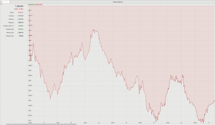 Ο Γενικός Δείκτης συμπλήρωσε την 4η πτωτική στις έξι τελευταίες συνεδριάσεις, αλλά οι συνολικές απώλειες είναι μόλις 0,90%. Η αγορά βρίσκει διαρκώς νέες στηρίξεις, εν μέσω εναλλαγών στους πρωταγωνιστές, ενώ το χθεσινό κλείσιμο στις 1.263,03 μονάδες είναι μόλις 14 μονάδες χαμηλότερο από τις 1.277,56 μονάδες που έκλεισε στις 16/6 και είναι υψηλά 9ετίας.
