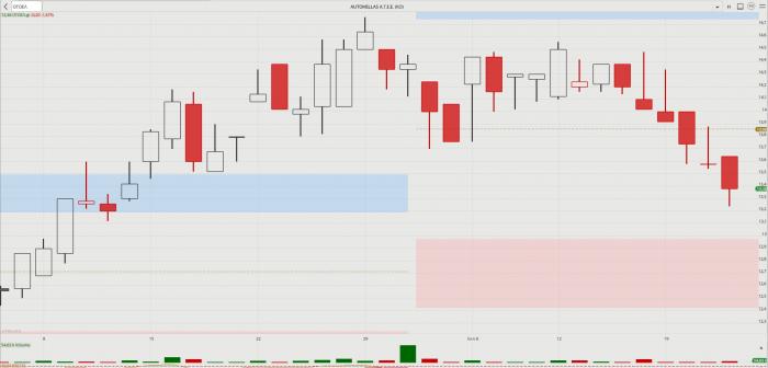 -- Autohellas: Συμπλήρωσε εξαήμερο σερί διορθωτικών συνεδριάσεων, χάνοντας 6,95%. Κίνηση υγιής για μια μετοχή που είχε «χτυπήσει» πολλαπλά ιστορικά υψηλά. Κρατάει άνοδο 50% φέτος.