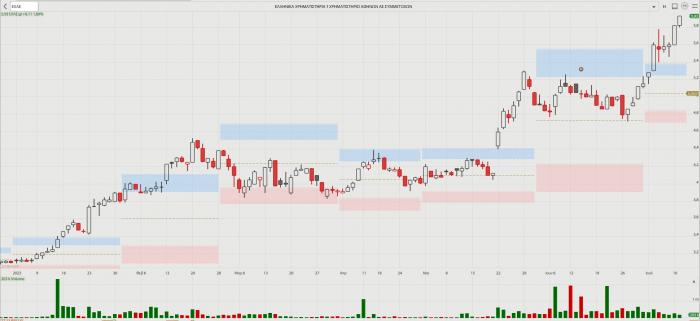 -- ΕΧΑΕ: Ενισχύθηκε κατά 1,89% φτάνοντας στα 5,93 ευρώ, επίπεδα που είχε να δει από το Σεπτέμβριο του 2014. Έχει εντυπωσιακή κίνηση από τις 26 Ιουνίου 2023, καθώς σε έντεκα συνεδριάσεις κλείνει θετικά στις δέκα, με συγκομιδή +23,67%. Αισίως το τρέχον έτος κερδίζει 91,29%.