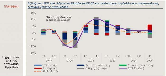 Στους παράγοντες που στήριξαν την πορεία της ανάπτυξης για την ελληνική οικονομία στο α' εξάμηνο του έτους, παρά το αβέβαιο διεθνές περιβάλλον αναφέρεται στην τακτική εβδομαδιαία έκθεσή της η Alpha Bank.