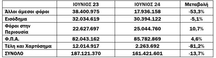 Για το 6μηνο, το νέο ληξιπρόθεσμο έφτασε τα 3,461 δισ. ενώ την ίδια περίοδο πέρυσι είχε φτάσει τα 3,053 δισ. (αύξηση κατά 13,4%). Για το μήνα αναφοράς (Ιούνιος) οι συνολικές εισπράξεις έναντι νέου ληξιπρόθεσμου (εκτός 10 ΜΦΚ) έφτασαν τα 173 εκατ., ενώ την αντίστοιχη περίοδο του 2023 έφτασαν τα 199 εκατ. (μείωση κατά 13%).