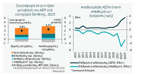 Σύμφωνα με τα αναθεωρημένα στοιχεία, η συνεισφορά του ΑΣΠΚ στην οικονομική δραστηριότητα ενισχύθηκε σημαντικά με το μερίδιό του στο ΑΕΠ να αυξάνεται στο υψηλό 13 ετών του 15,8% το 2023 (σε σύγκριση με το 14,3% του ΑΕΠ της προηγούμενης εκτίμησης και μέσο όρο για την ευρωζώνη, για το 2023, στο 21,2%). Η επανεκτίμηση αποτυπώνει κυρίως υψηλότερες, από τις αρχικά εκτιμώμενες, ιδιωτικές επενδύσεις, ειδικά σε μηχανολογικό εξοπλισμό, και στην κατηγορία «λοιπών» επενδυτικών δαπανών (που περιλαμβάνουν κυρίως εξοπλισμό πληροφορικής και δικαιώματα πνευματικής ιδιοκτησίας) αλλά και αυξημένη οικιστική κατασκευαστική δραστηριότητα.