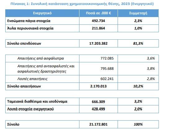 - Σύνολο Ενεργητικού: 21,2 δισ. €