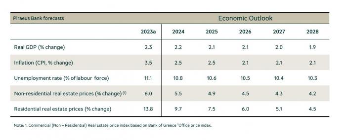 Εκτιμά ότι για το 2024 η ανάπτυξη θα φθάσει στο 2,2%, θα διαμορφωθεί στο 2,1% για το επόμενο έτος, ενώ το 2027 θα αγγίξει το 2% και το 2028 θα υποχωρήσει στο 1,9%..