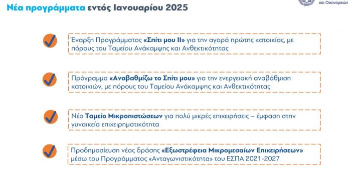 - Το πρόγραμμα «Σπίτι μου 2», το οποίο ξεκίνησε χθες και χρησιμοποιεί πόρους του Ταμείου Ανάκαμψης