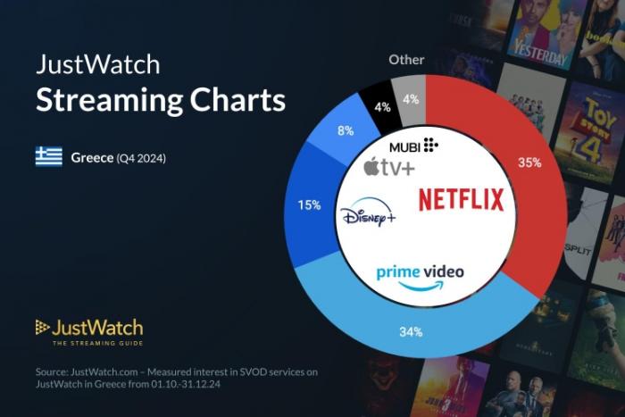 Διατήρησε τα ηνία της ελληνικής αγοράς streaming ανάμεσα στους ξένους παίκτες το Netflix κλείνοντας το 2024 στην κορυφή, παρά τη συνεχή πτώση που καταγράφει από τον Αύγουστο. Η δημοφιλής πλατφόρμα που έχει ενισχυθεί παγκοσμίως με αύξηση των συνδρομητών που έχουν έρθει λόγω του νέου περιεχομένου και της προσθήκης αθλητικών γεγονότων διατηρεί τη βραχεία κεφαλή, την ίδια στιγμή που οι ελληνικοί πάροχοι αντεπιτίθενται.