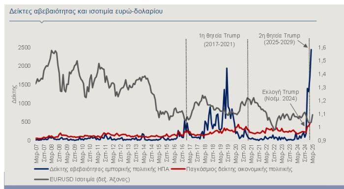 Ενδεικτικά, ο Οργανισμός Οικονομικής Συνεργασίας και Ανάπτυξης (ΟΟΣΑ) στην αναθεωρημένη έκθεσή του, όπως και άλλοι διεθνείς οίκοι, προβλέπουν επιβράδυνση της αμερικανικής οικονομίας και ήπια αύξηση του πληθωρισμού, το 2025 και το 2026. Επίσης, οι χρηματιστηριακές αγορές βρίσκονται σε ανησυχία, με τον δείκτη S&P 500 των αμερικανικών μετοχών να έχει υποχωρήσει κατά 8% (20 Μαρτίου 2025) από το ανώτατο σημείο του, τον Φεβρουάριο.