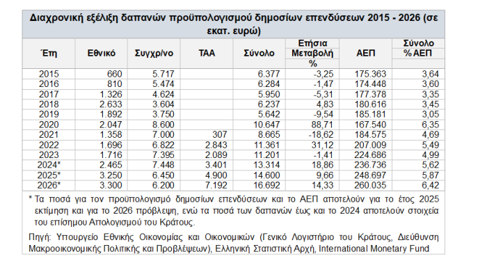 Σημειώνεται πως θα υλοποιηθεί και διευρυμένο πρόγραμμα δημοσίων επενδύσεων το 2026, με πόρους ύψους 16,7 δισ. ευρώ έναντι 14,6 δισ. ευρώ το 2025.