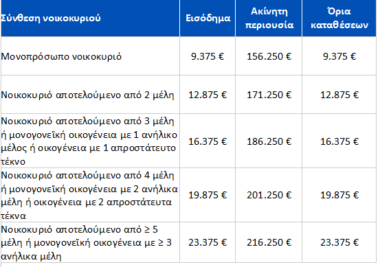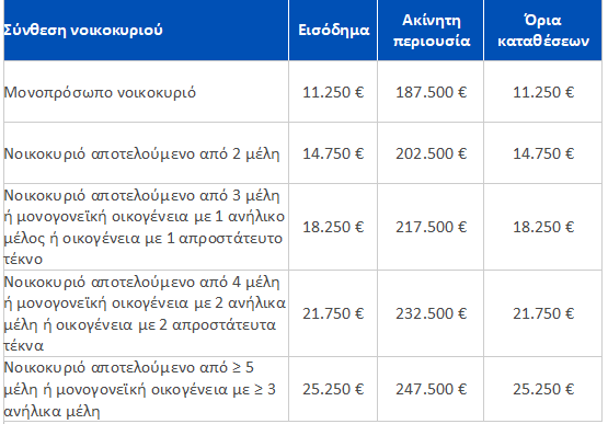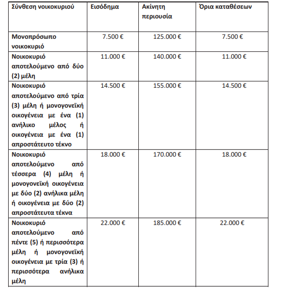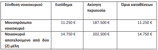 Α/ Για δανειολήπτες που πληρούν τα εξής περιουσιακά και εισοδηματικά όρια, καθώς και  όρια καταθέσεων της παρούσας (Κατηγορία 1):