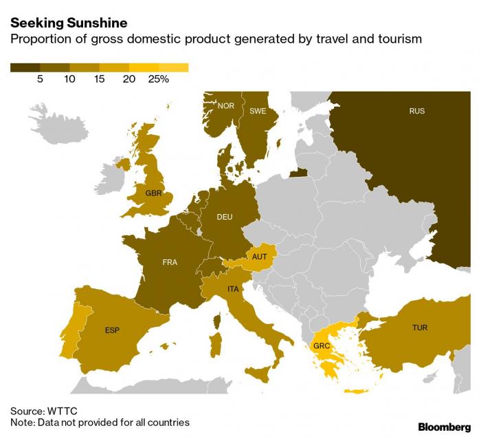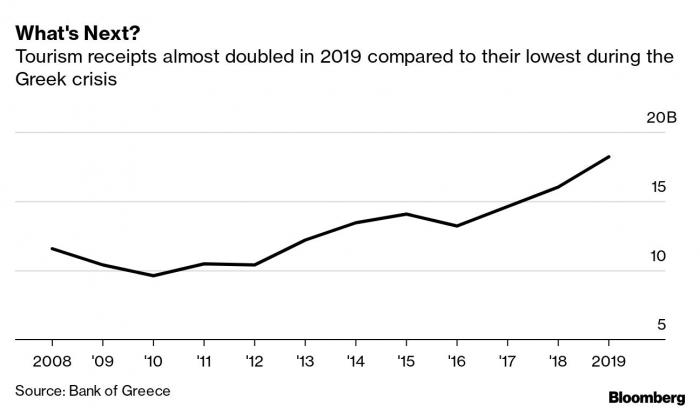 Η ελληνική οικονομία, συνεχίζει το Bloomberg, η οποία αναδύθηκε με θετικές προοπτικές μετά από 10 χρόνια κρίσης, βρίσκεται αντιμέτωπη με ένα ακόμη εμπόδιο, καθώς αποτυχία του τουρισμού θα μπορούσε να την αναγκάσει να γυρίσει «στα σκληρά χρόνια της κρίσης».