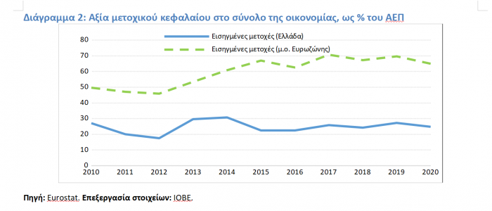 Το ΙΟΒΕ διευκρινίζει ότι η ανάπτυξη της κεφαλαιαγοράς προτάσσεται ως συμπληρωματική του ρόλου του τραπεζικού συστήματος στη χρηματοδότηση παραγωγικών επενδύσεων και θεωρείται ότι επιτελεί τουλάχιστον τέσσερεις σκοπούς.
