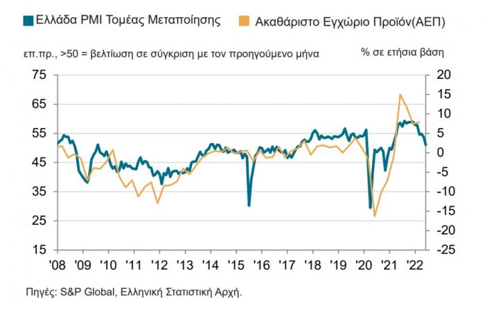 Όπως επισημαίνει για την περίπτωση του ελληνικού ΡΜΙ η οικονομολόγος της S&P Global, Siân Jones: «Η επίδραση του πληθωρισμού στις δαπάνες των πελατών έγινε περισσότερο αισθητή από τους Έλληνες κατασκευαστές κατά τη διάρκεια του Ιουνίου, καθώς η παραγωγή και οι νέες παραγγελίες μειώθηκαν για πρώτη φορά από τον Μάρτιο του 2021. Η ζήτηση των πελατών από το εσωτερικό και το εξωτερικό συρρικνώθηκε, καθώς υπήρξαν αναφορές για πελάτες που ανέβαλαν ή ακύρωσαν παραγγελίες. Παρόλο που οι πληθωριστικές πιέσεις παρέμειναν συγκριτικά έντονες, ο ρυθμός αύξησης των τιμών πώλησης και του κόστους εισροών εξασθένησε, παρά τις συνεχιζόμενες αναφορές για αυξήσεις στις τιμές της ενέργειας, των καυσίμων και των υλικών. Η εμπιστοσύνη των κατασκευαστών υποχώρησε σημαντικά σε σύγκριση με τον Μάιο, καθώς οι ανησυχίες σχετικά με τις περαιτέρω επιπτώσεις των αυξήσεων των τιμών στις συνθήκες ζήτησης επηρέασαν αρνητικά το κλίμα.»