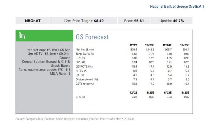 «Αναμένουμε κάποια θετική αντίδραση της αγοράς, δεδομένου του σταθερού ρυθμού αύξησης των NII, της θετικής δυναμικής στην κεφαλαιακή θέση και την ποιότητα του ενεργητικού» καταλήγει η Goldman Sachs.