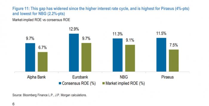Σταθερά μεταξύ των επενδυτικών οίκων που ποντάρουν υπέρ των ελληνικών τραπεζών παραμένει η JP Morgan, η οποία σε νέα έκθεσή της, υπογραμμίζει ότι θα συνεχίσουν να έχουν ισχυρές αποδόσεις.