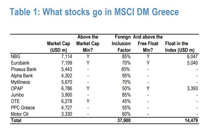 Οι τρεις μετοχές της DM Greece θα έχουν κεφαλαιοποίηση 14 δισ. δολαρίων, 13 μ.β. της κεφαλαιοποίησης των 11 τρισ. δολαρίων MSCI Europe. Έτσι, θα ήταν η μικρότερη αγορά της MSCI στην Ευρώπη, πίσω από την Πορτογαλία (31 δισ. δολ.) και την Αυστρία (29 δισ. δολ.).