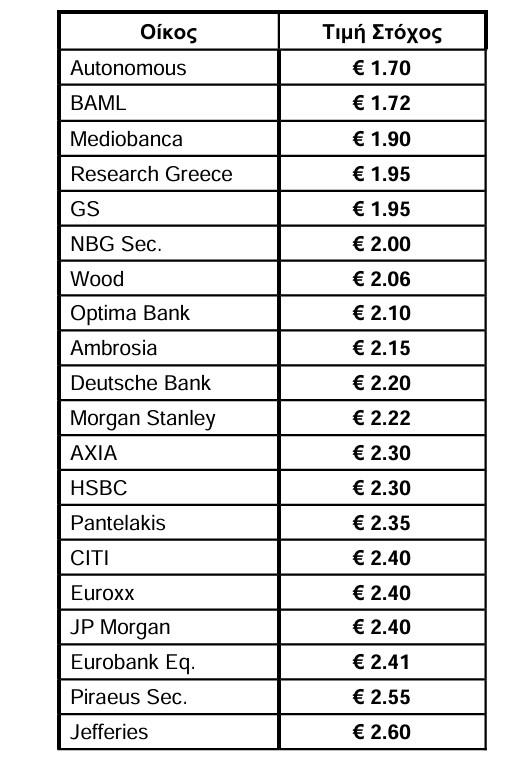 Οι τιμές - στόχοι για τη μετοχή