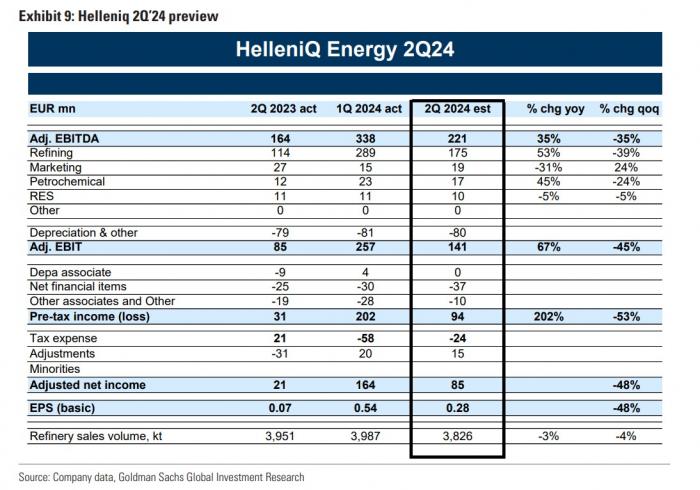 Πάντως ο αμερικανικός όμιλος προχωρά σε αύξηση των εκτιμήσεών του για τα προσαρμοσμένα EBITDA των δύο ελληνικών διυλιστηρίων για την επόμενη 3ετία. Οι αναλυτές της GS αναμένουν αύξηση 8% στα προσαρμοσμένα EBITDA το 2024, κατά 2% το 2025 και κατά 1% το 2026. Αντίθετα οι εκτιμήσεις για τα κέρδη ανά μετοχή υποβαθμίζονται κατά 30%, καθώς περιλαμβάνει, πλέον, σε αυτές και τον έκτακτο φόρο.