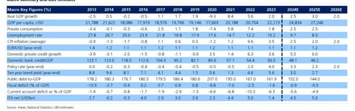 Εκτιμά ότι το ΑΕΠ θα τρέξει με ρυθμό 2,5% φέτος και 3% το 2025, δηλαδή υψηλότερα από τις αντίστοιχες προβλέψεις του μέσου όρου των αναλυτών. Υπάρχουν πέντε βασικές αιτίες για την αισιοδοξία των αναλυτών του ελβετικού ομίλου: