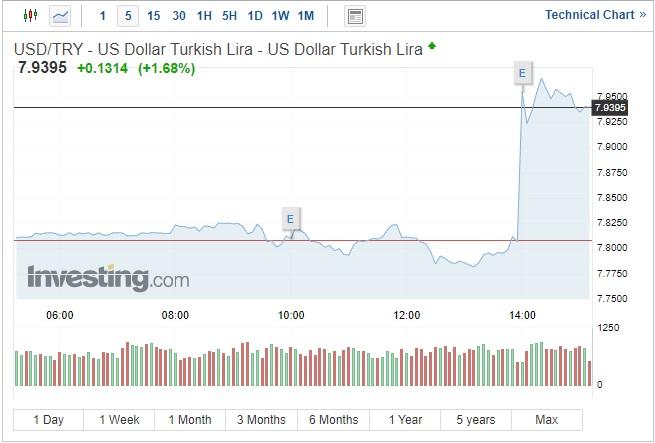 Aπώλειες σχεδόν 2% καταγράφει η τουρκική λίρα, καθώς η κεντρική τράπεζα διέψευσε τις προσδοκίες και δεν προχώρησε σε αύξηση επιτοκίων.