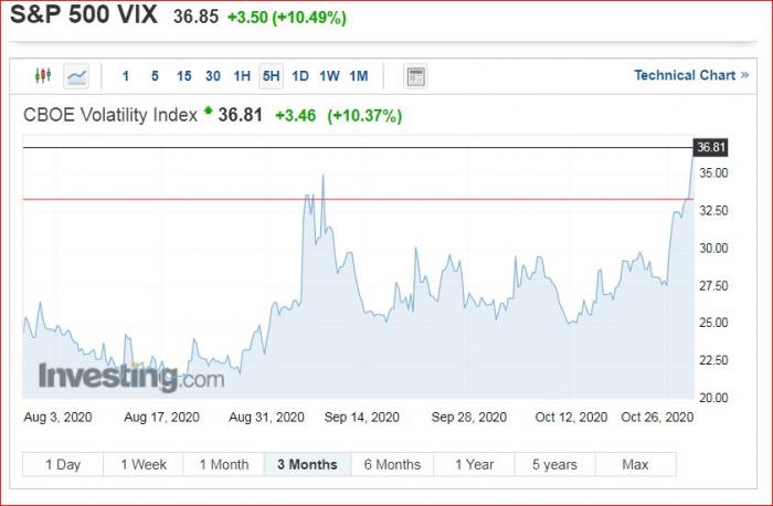 Ο δείκτης VIX, που θεωρείται μέτρο της μεταβλητότητας των μετοχών των ΗΠΑ, έχει ανέλθει στο υψηλότερο σημείο των τελευταίων 3 μηνών.