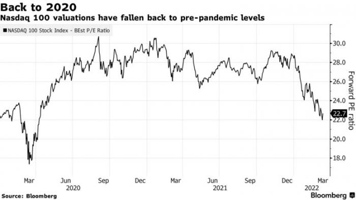 Η αποσύνδεση μεταξύ της πτώσης των τιμών των μετοχών και των αυξανόμενων προσδοκιών για τα κέρδη αντανακλά το επίπεδο ανησυχίας για τις επιπτώσεις των αναμενόμενων αυξήσεων των επιτοκίων από τη Fed σε συνδυασμό με τους κινδύνους που εγκυμονεί η δυναμική αύξηση του πληθωρισμού, ιδιαίτερα μετά την εισβολή της Ρωσίας στην Ουκρανία. Πλέον οι μετοχές τεχνολογίας μπορεί να μην είναι αρκετά φθηνές, εάν επιδεινωθούν οι οικονομικές προοπτικές.
