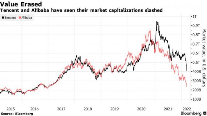 Παράλληλα η Tencent που την περασμένη χρονιά χτυπούσε την πόρτα του 1 τρισ. δολαρίων κεφαλαιοποίησης, βλέπει την αποτίμηση της να βρίσκεται τώρα στα επίπεδα των 400 δισ. δολαρίων, ενώ η εταιρεία βρίσκεται αντιμέτωπη και με ένα πρόστιμο «μαμούθ» από τις κινεζικές αρχές, καθώς η κεντρική τράπεζα της Κίνας υποστηρίζει ότι το WeChat Pay έχει παραβιάσει τους κανόνες για ξέπλυμα χρήματος.
