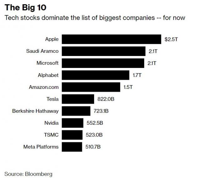 Τα τελευταία χρόνια, οι τεχνολογικοί κολοσσοί όπως η Apple ή η Microsoft και η Amazon είχαν καταλάβει τις περισσότερες από τις κορυφαίες θέσεις των εταιρειών με την μεγαλύτερη χρηματιστηριακή αξία. Η εικόνα αυτή δείχνει να αλλάζει καθώς από την αρχή του έτους, οι τεχνολογικές μετοχές έχουν χάσει περισσότερα από 2 τρισ. δολάρια σε κεφαλαιοποίηση.