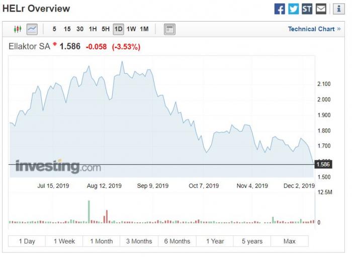 Σημειώνεται ότι στις 29 Νοεμβρίου, όταν η ΕΛΛΑΚΤΩΡ ανακοίνωσε την απόφασή της να προχωρήσει σε μεγάλη διεθνή ομολογιακή έκδοση με στόχο κυρίως την αναχρηματοδότηση υφισταμένων υποχρεώσεων, η μετοχή της εταιρίας είχε κλείσει στα 1,7540 ευρώ.